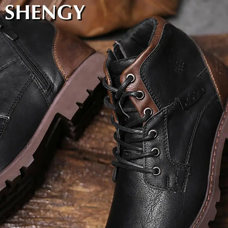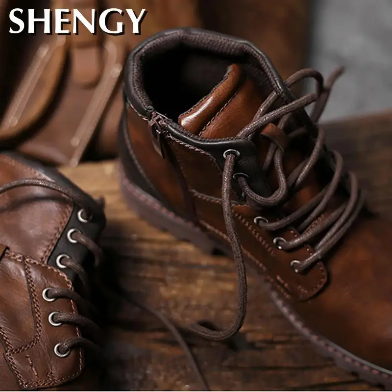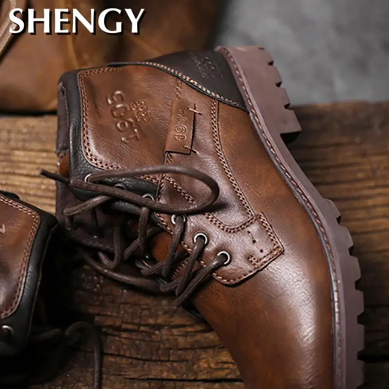 Best Price Comparison With Men Shoes Autumn Winter Boots Retro Style Ankle Boots Lace Up Casual Boots High-top Shoes For Men Wear-resistant Zapatos Boots