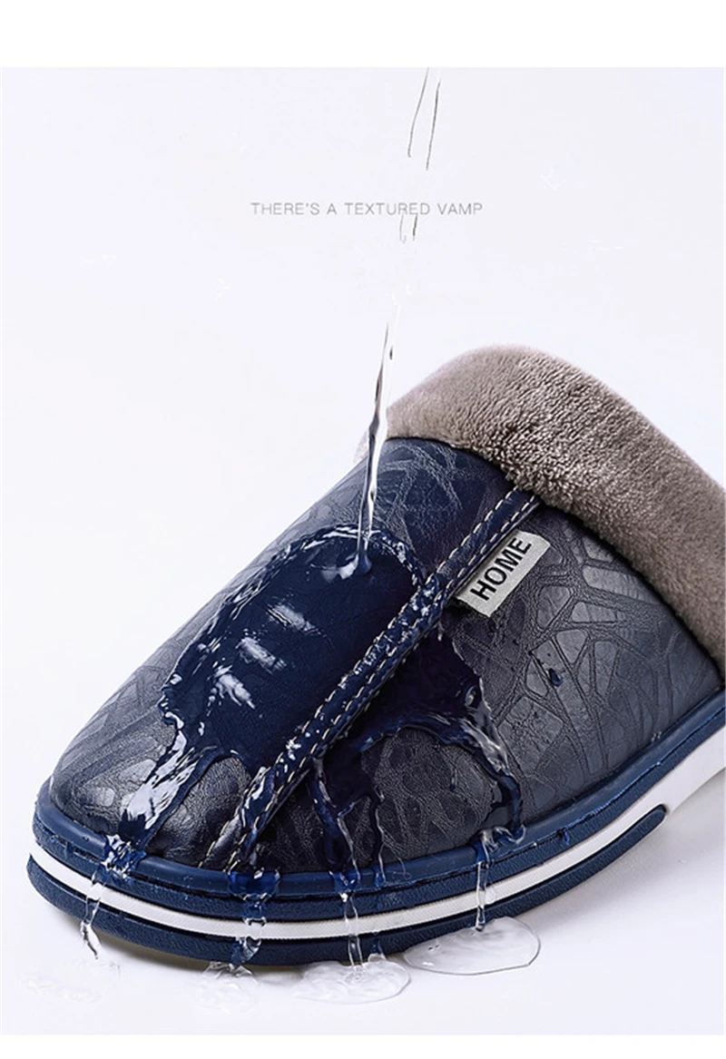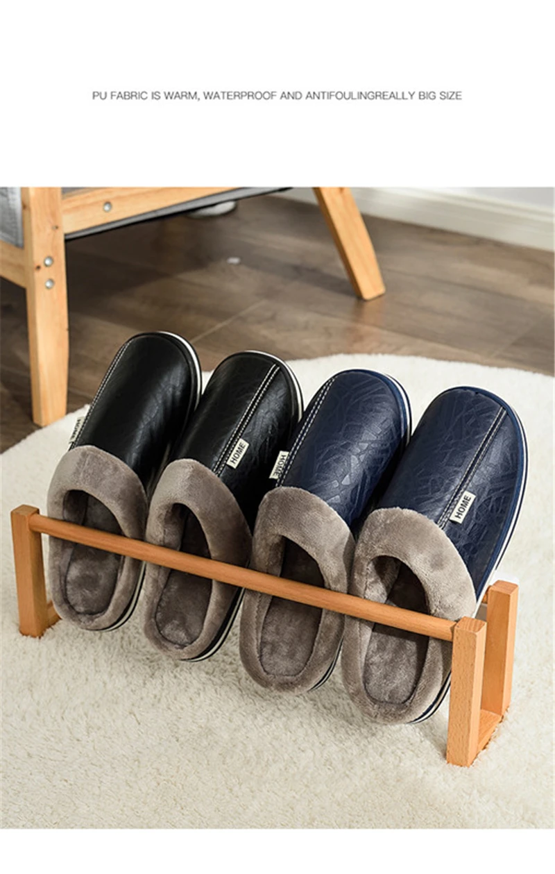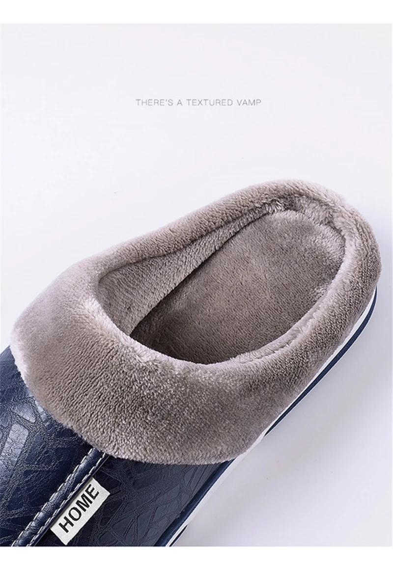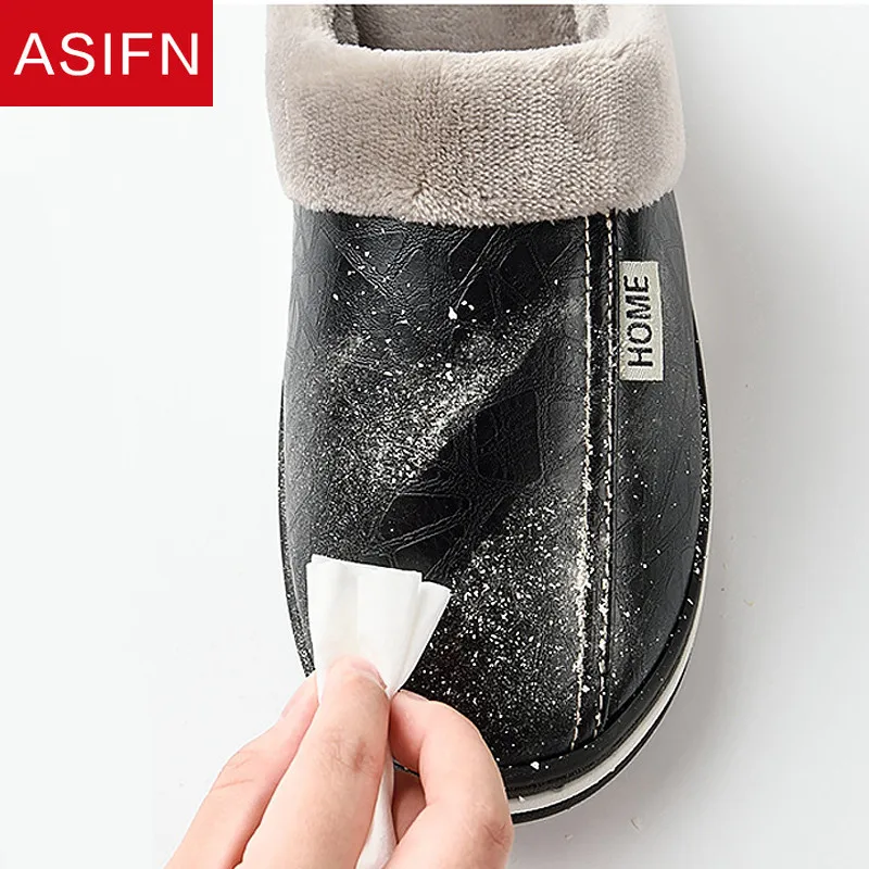 ASIFN Men Slippers Indoor Leather Winter Waterproof Warm Home Fur Women Slipper Male Couple Platform Shoes Fluffy Big Sizes