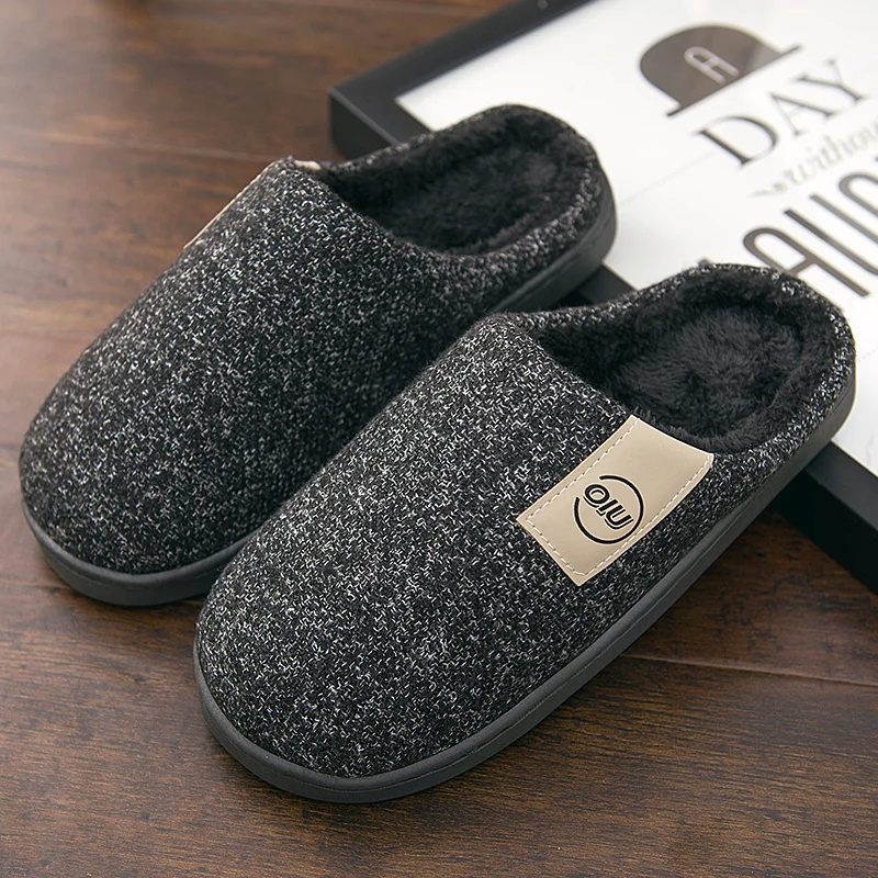 Home Men Slippers Winter Big Size 45-50 Gingham Warm Fur Slippers for male Antiskid Suede Short Plush House shoes men Hot saleBuy Now On Aliexpress
