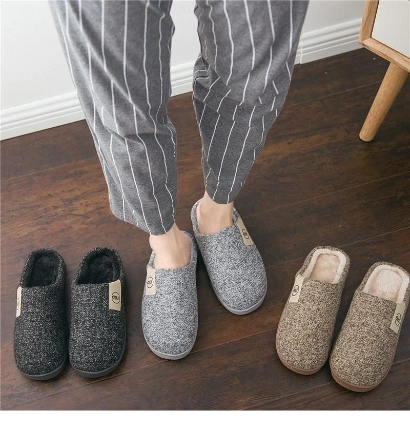 Winter warm slippers men Suede Gingham Short plush Indoor shoes for male Non slip Cozy Velvet Waterproof Fur home men slippersBuy Now On Aliexpress
