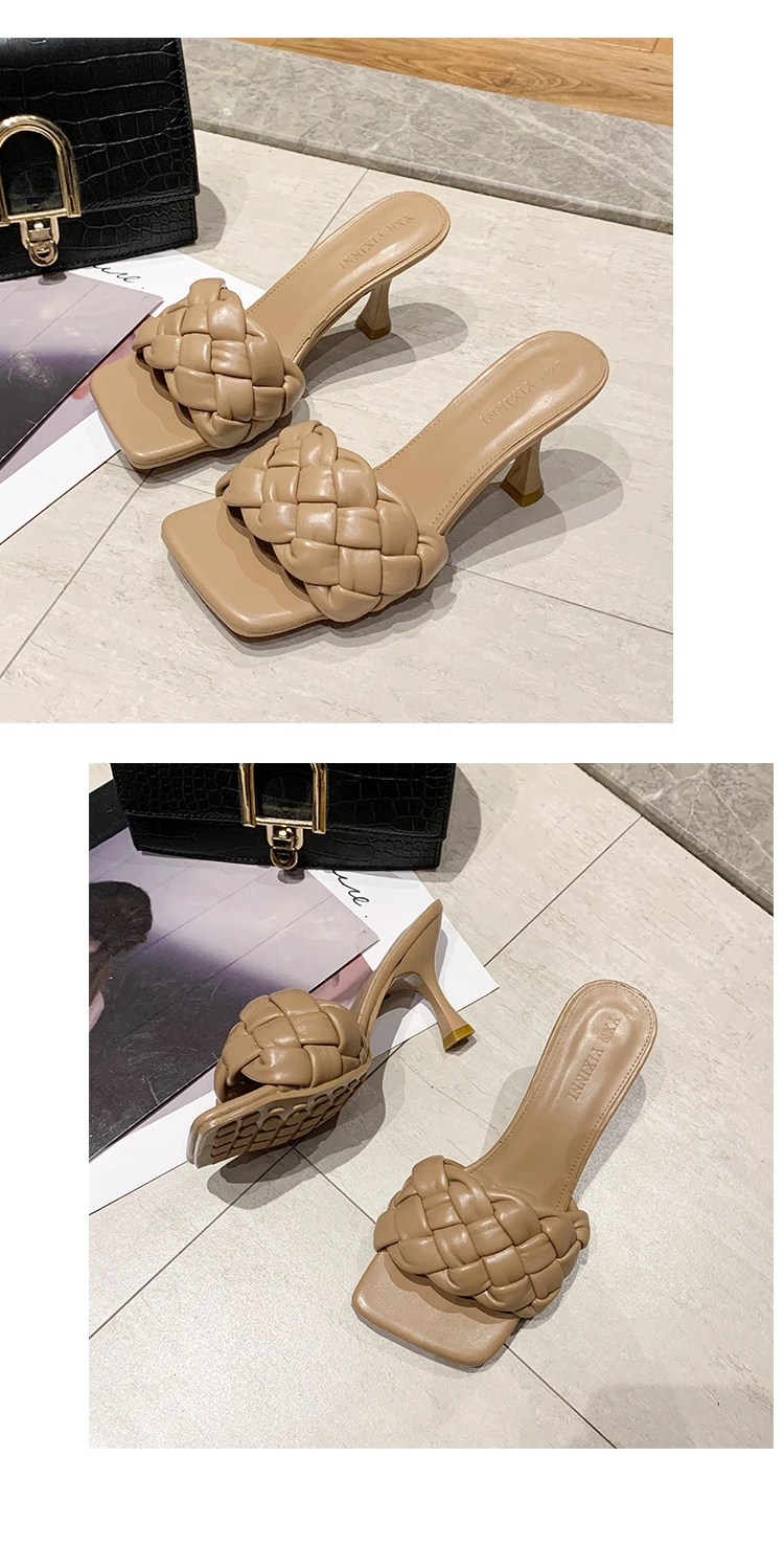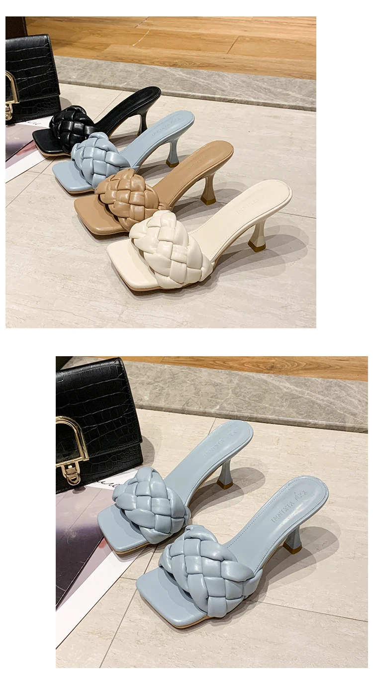 Luxury Slides Women 7cm High Heels Mules Fetish Pumps Individual Weave Leisure Blue Office Ladies Prom Slippers Women's Shoes