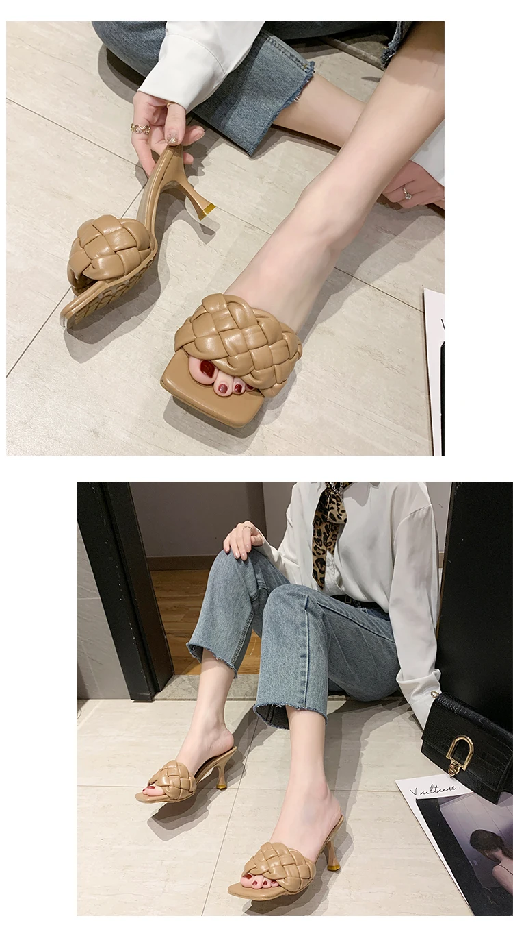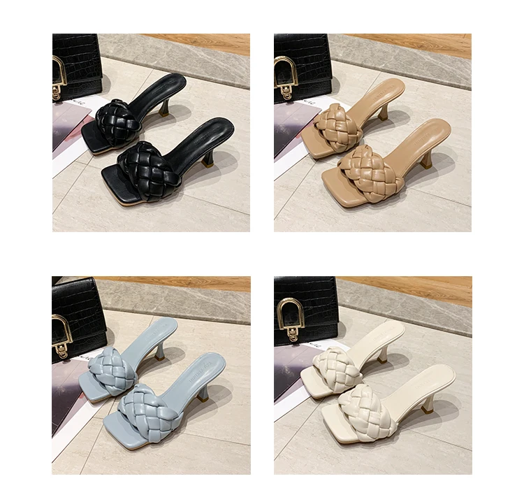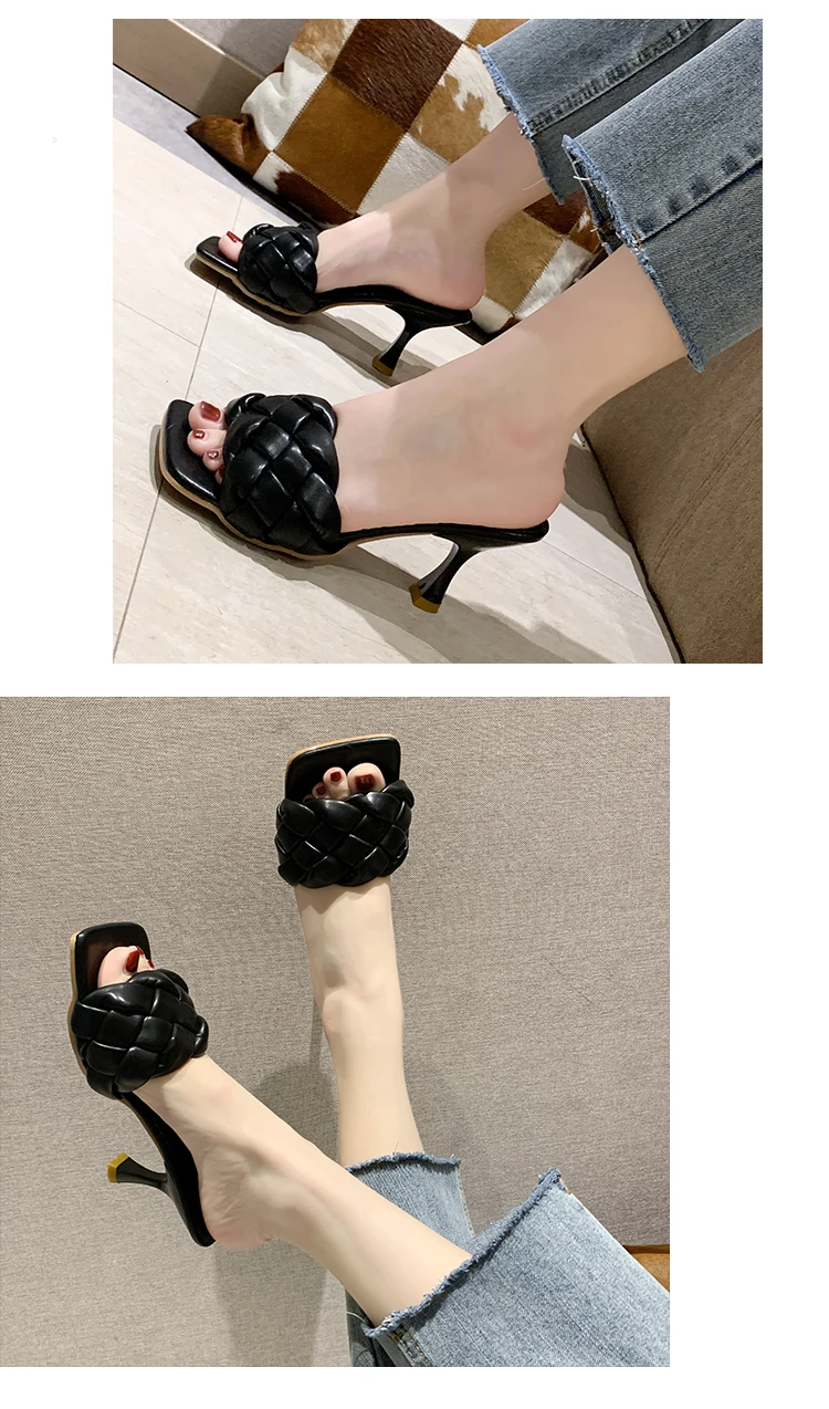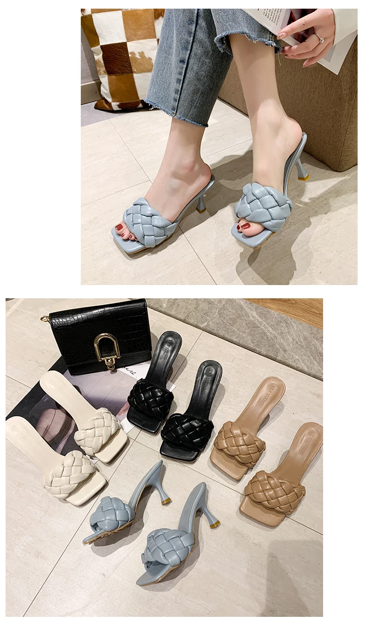 | Luxury Slides Women 7cm High Heels Mules Fetish Pumps Individual Weave Leisure Blue Office Ladies Prom Slippers Women's Shoes |
