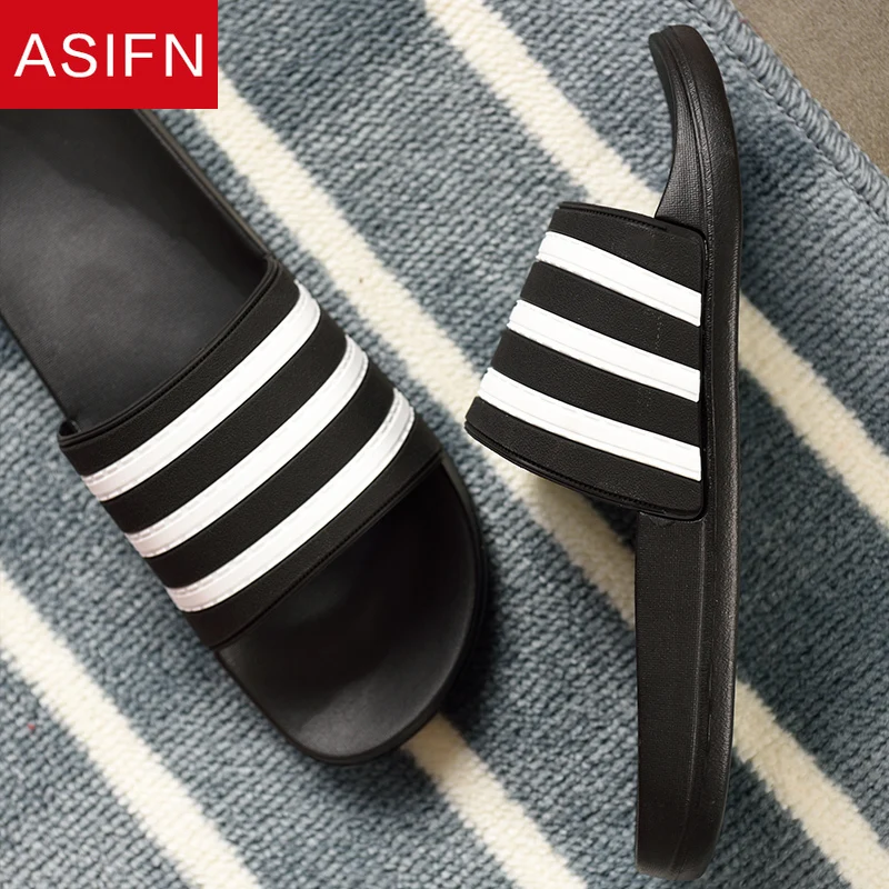 | ASIFN Men's Slippers EVA Men Shoes Women Couple Flip Flops Soft Black White Stripes Casual Summer Male Chaussures Femme Slides |