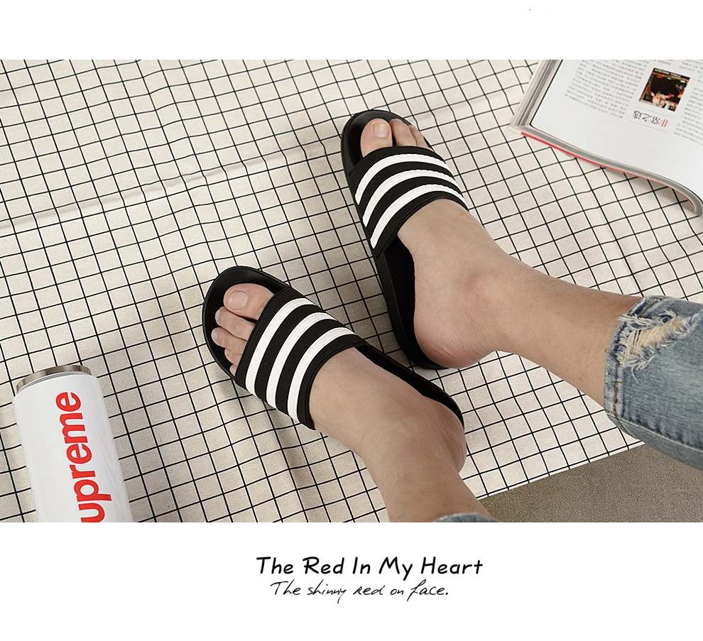 ASIFN Men's Slippers EVA Men Shoes Women Couple Flip Flops Soft Black White Stripes Casual Summer Male Chaussures Femme Slides