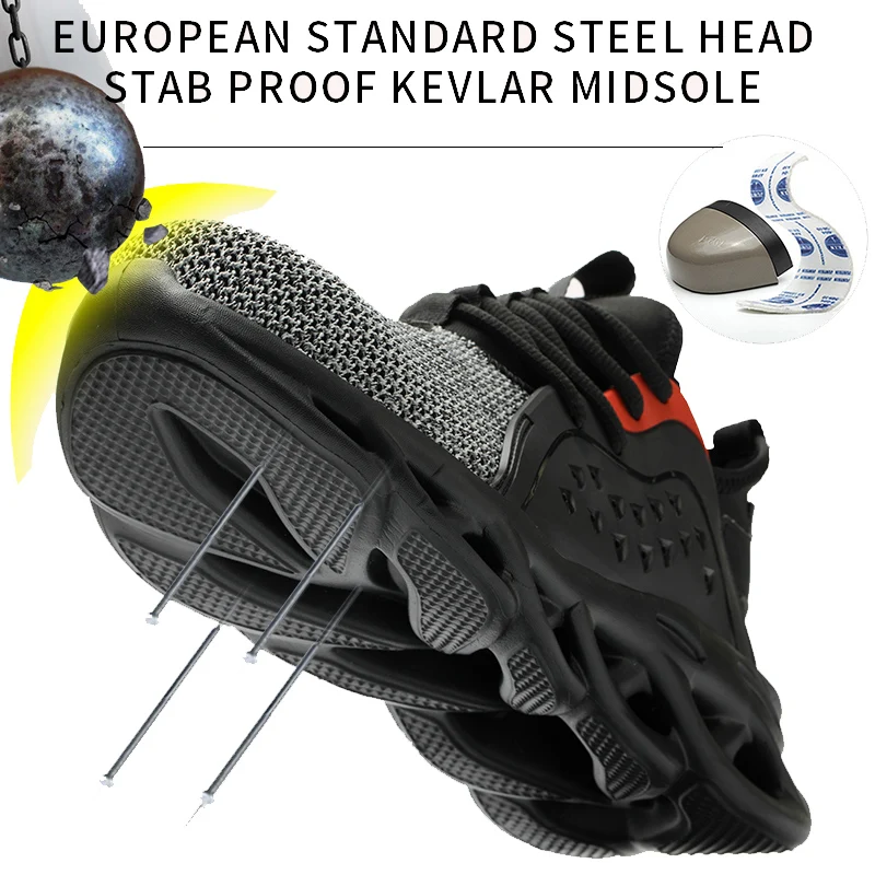 JACKSHIBO Work Safety Shoes For Men Summer Breathable Boots Working Steel Toe Anti-Smashing Construction Safety Work Sneakers