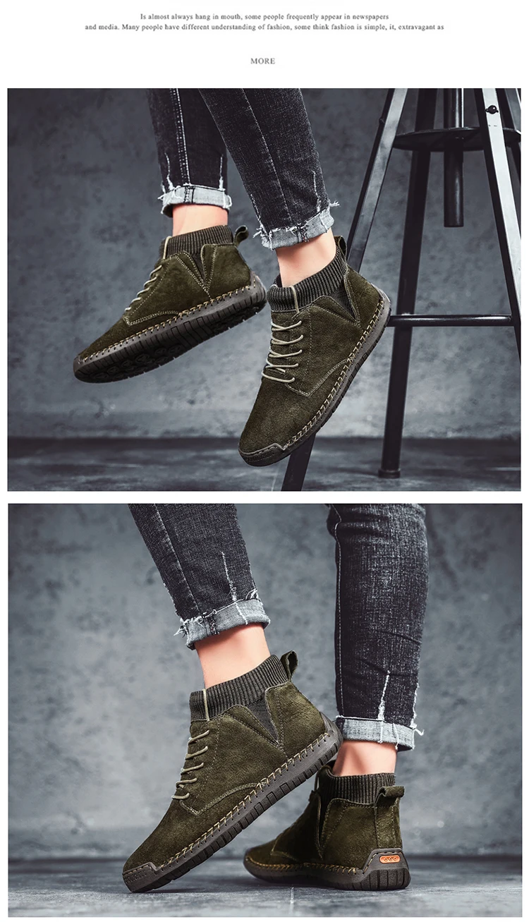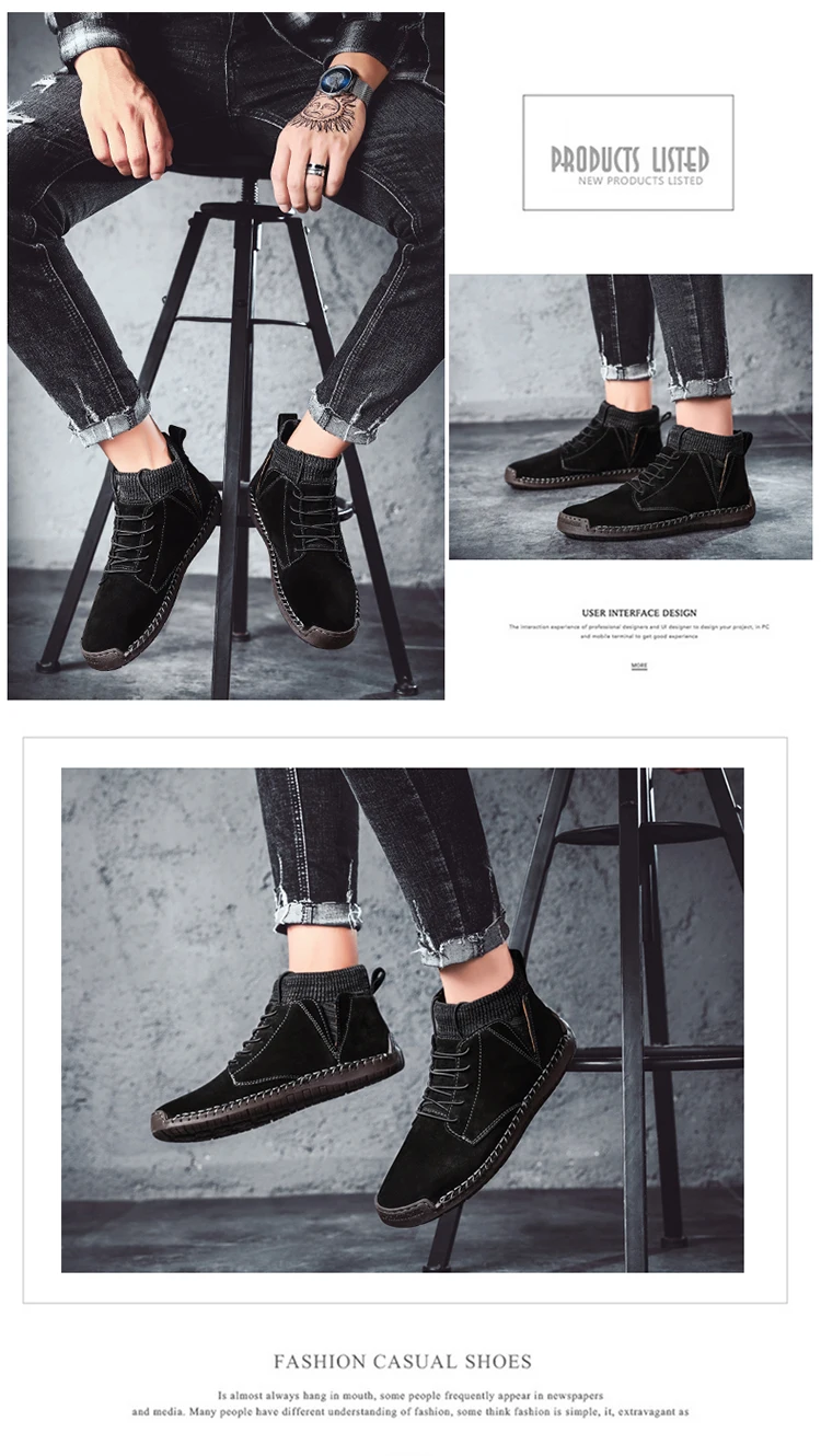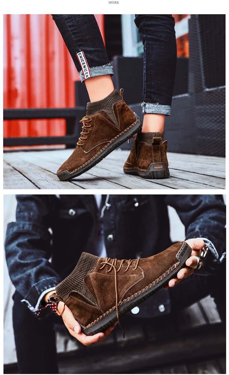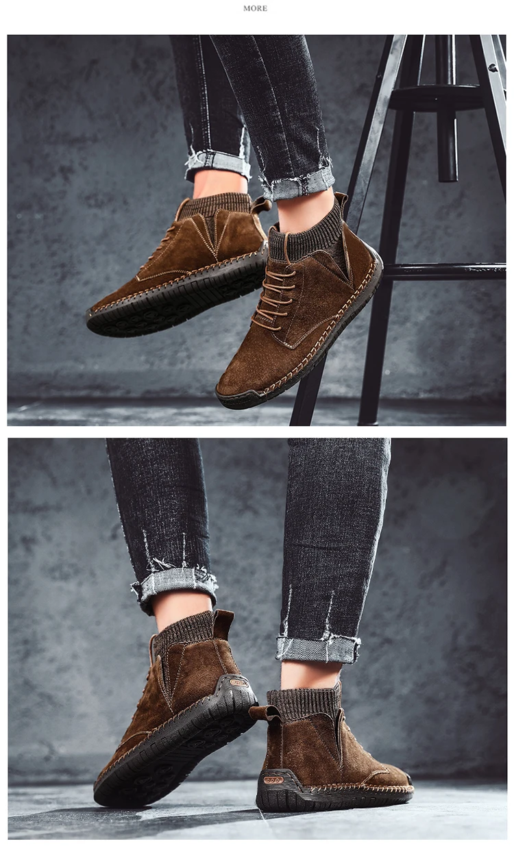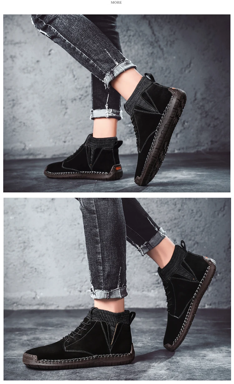 | Winter Men's Boots Thick Plush Warm Men's Snow Boots Suede Men's Ankle Boots Handmade Men's Boots Winter Outdoor Men's Shoes VIP |