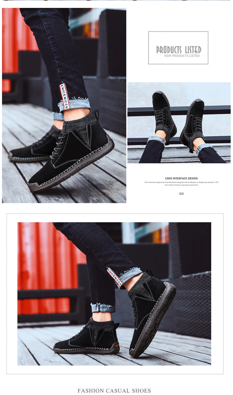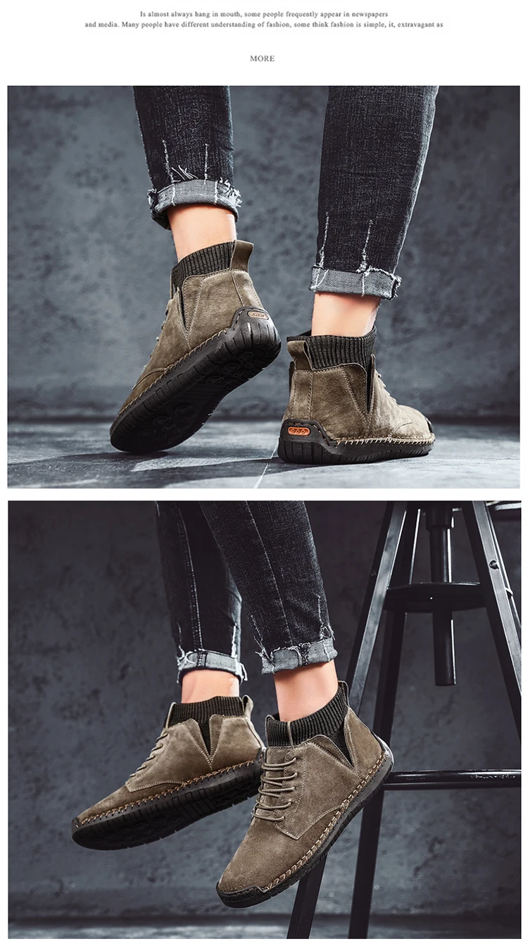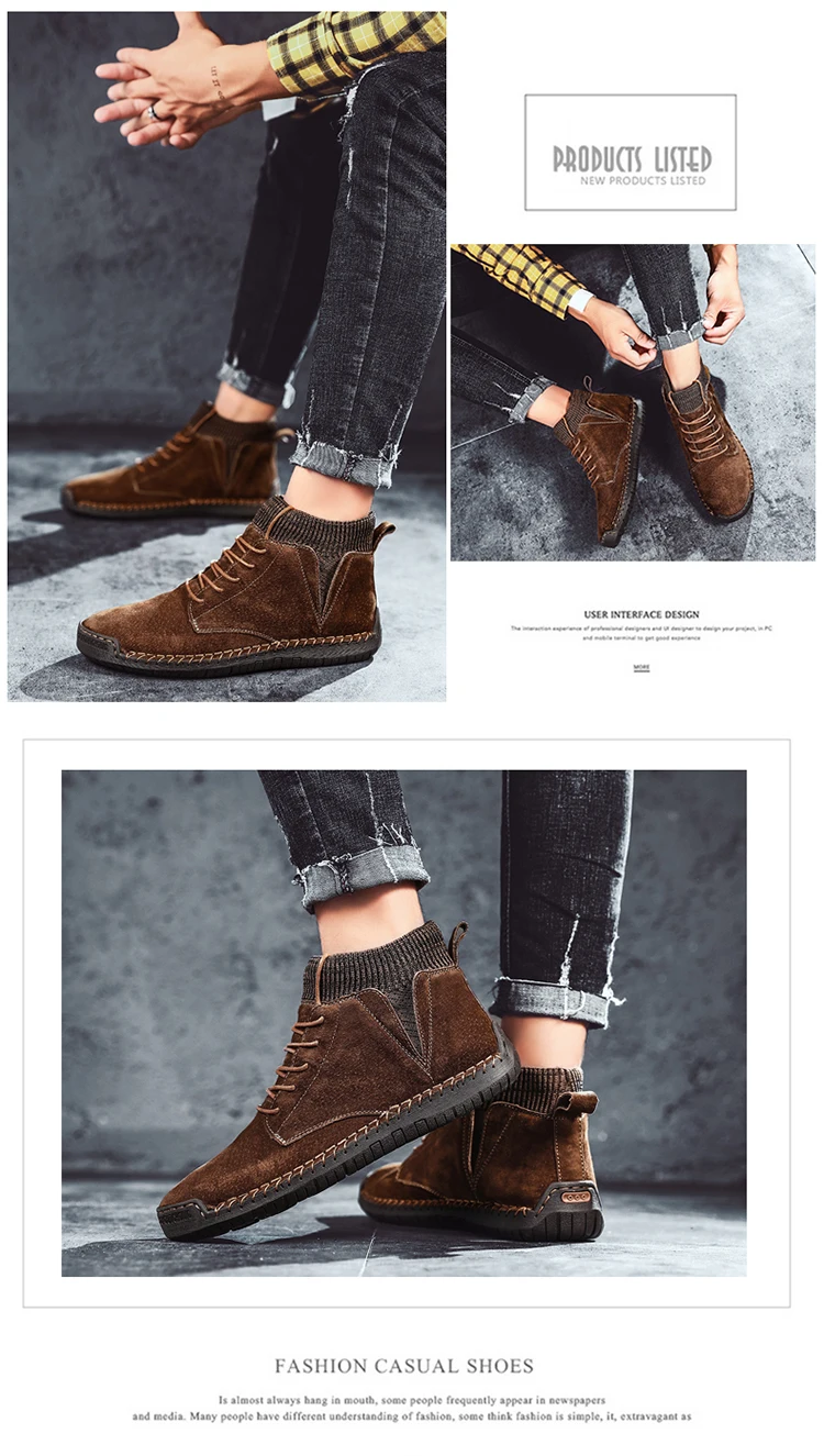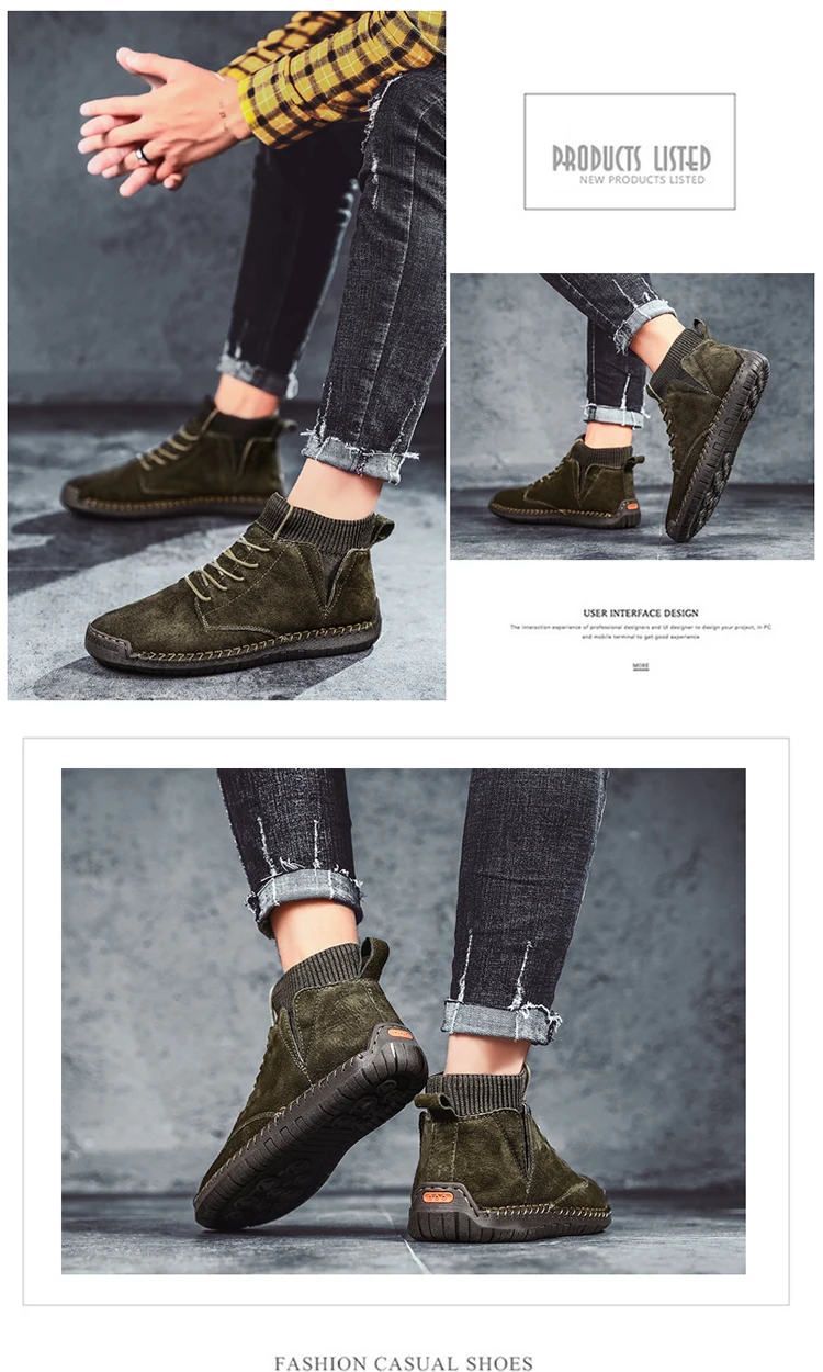 | Winter Men's Boots Thick Plush Warm Men's Snow Boots Suede Men's Ankle Boots Handmade Men's Boots Winter Outdoor Men's Shoes VIP |
