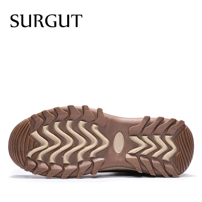 SURGUT Men Boots Split Leather Lace-up Men Shoes High Quality Vintage British Snow Boots Autumn Winter Men Casual Ankle Boots