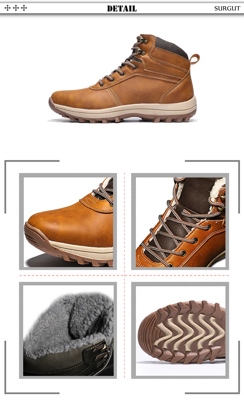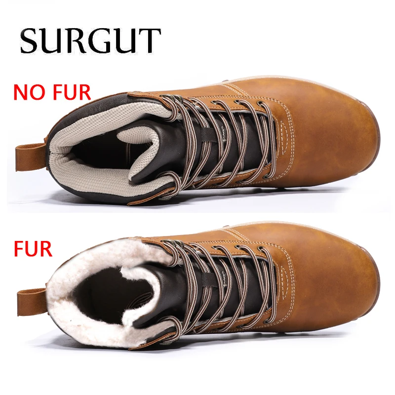 | SURGUT Men Boots Split Leather Lace-up Men Shoes High Quality Vintage British Snow Boots Autumn Winter Men Casual Ankle Boots |