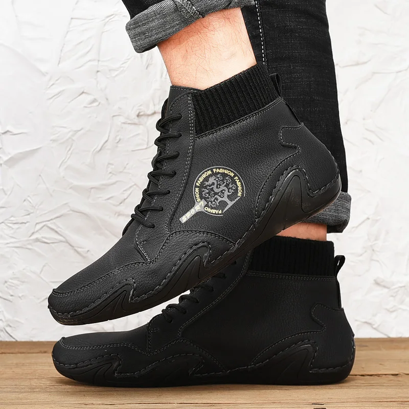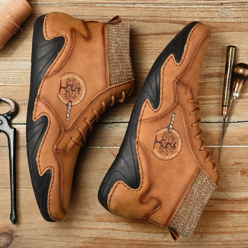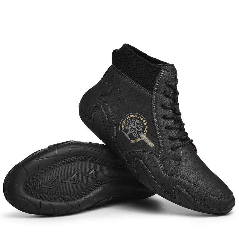 | Leather Men Boots Winter with Fur Super Warm Snow Boots Men Winter Casual Shoes Sneakers High Top Western Ankle Boots Waterproof |