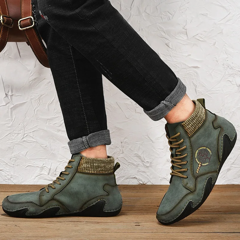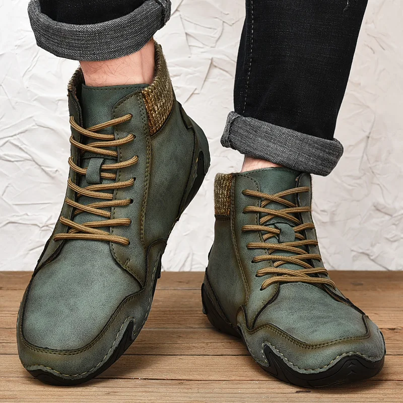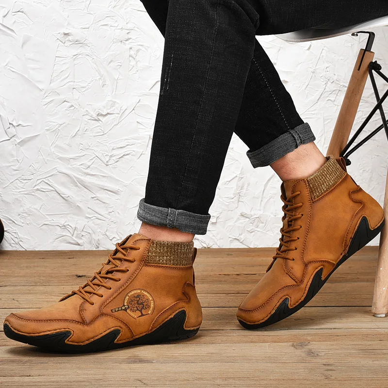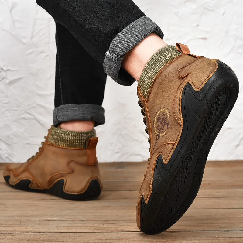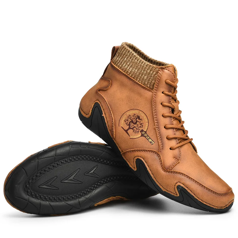 Leather Men Boots Winter with Fur Super Warm Snow Boots Men Winter Casual Shoes Sneakers High Top Western Ankle Boots Waterproof