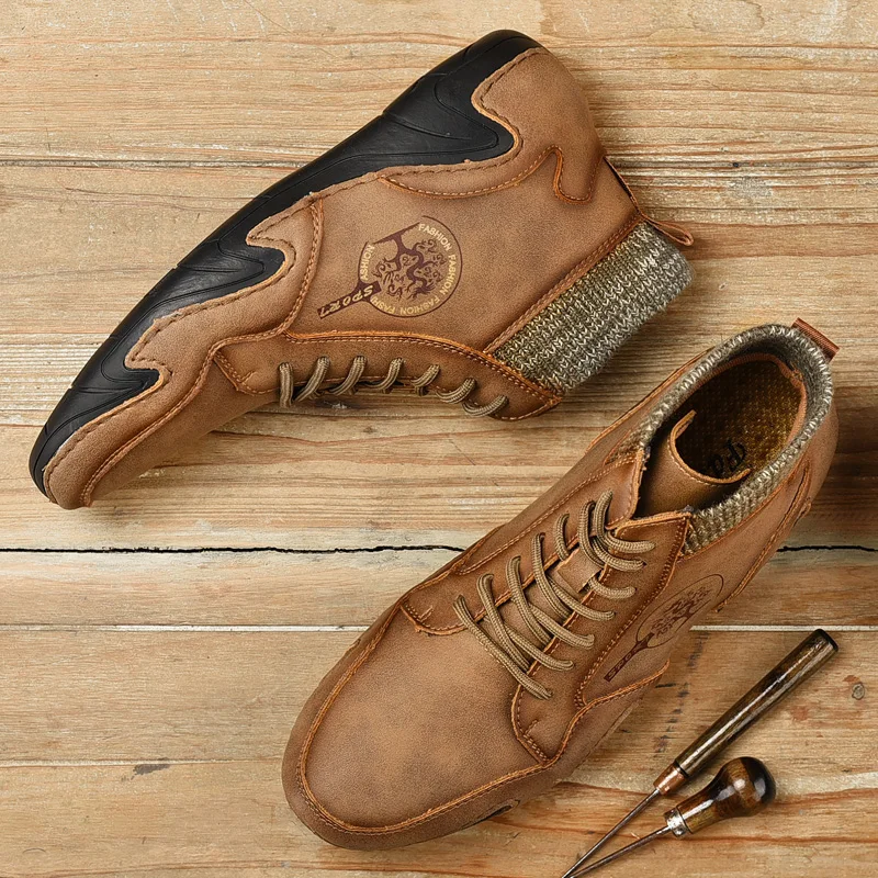 Leather Men Shoes Sneakers Trend Casual Shoe Italian Breathable Leisure Male Sneakers Non-slip Footwear Men Vulcanized Shoes