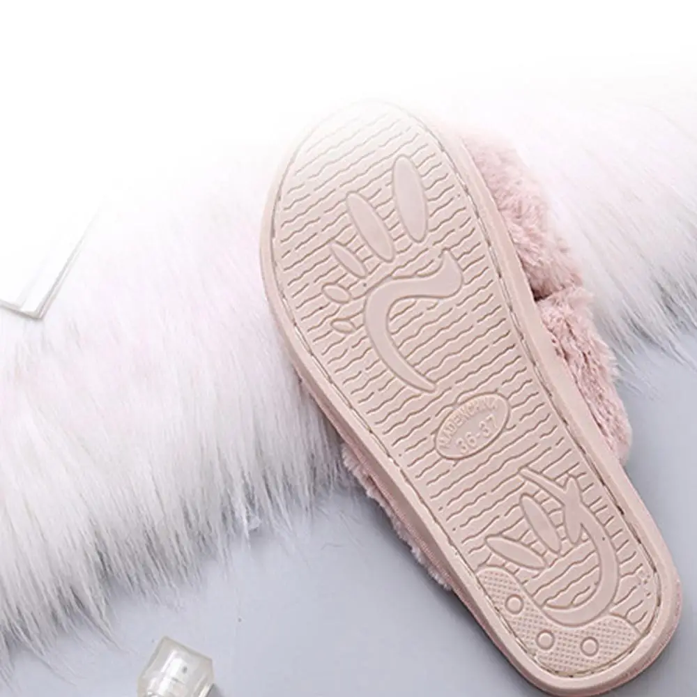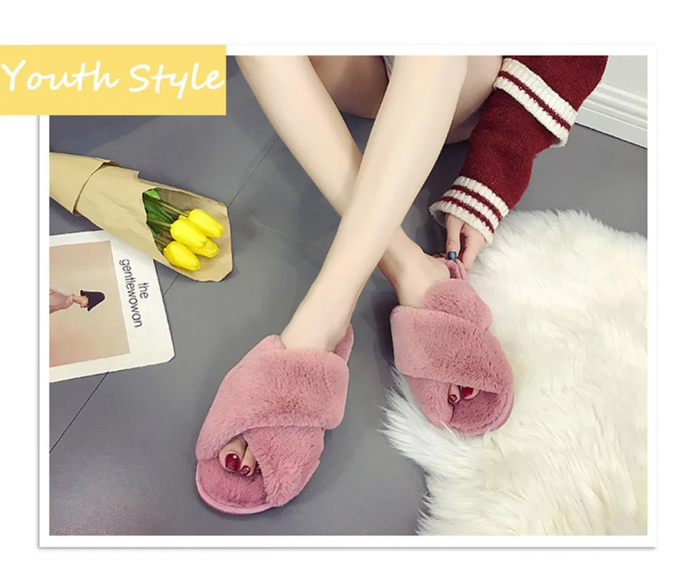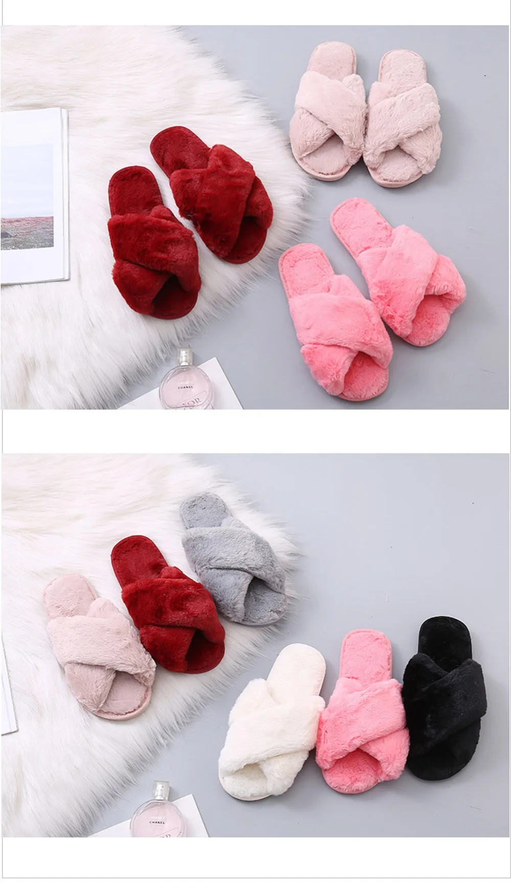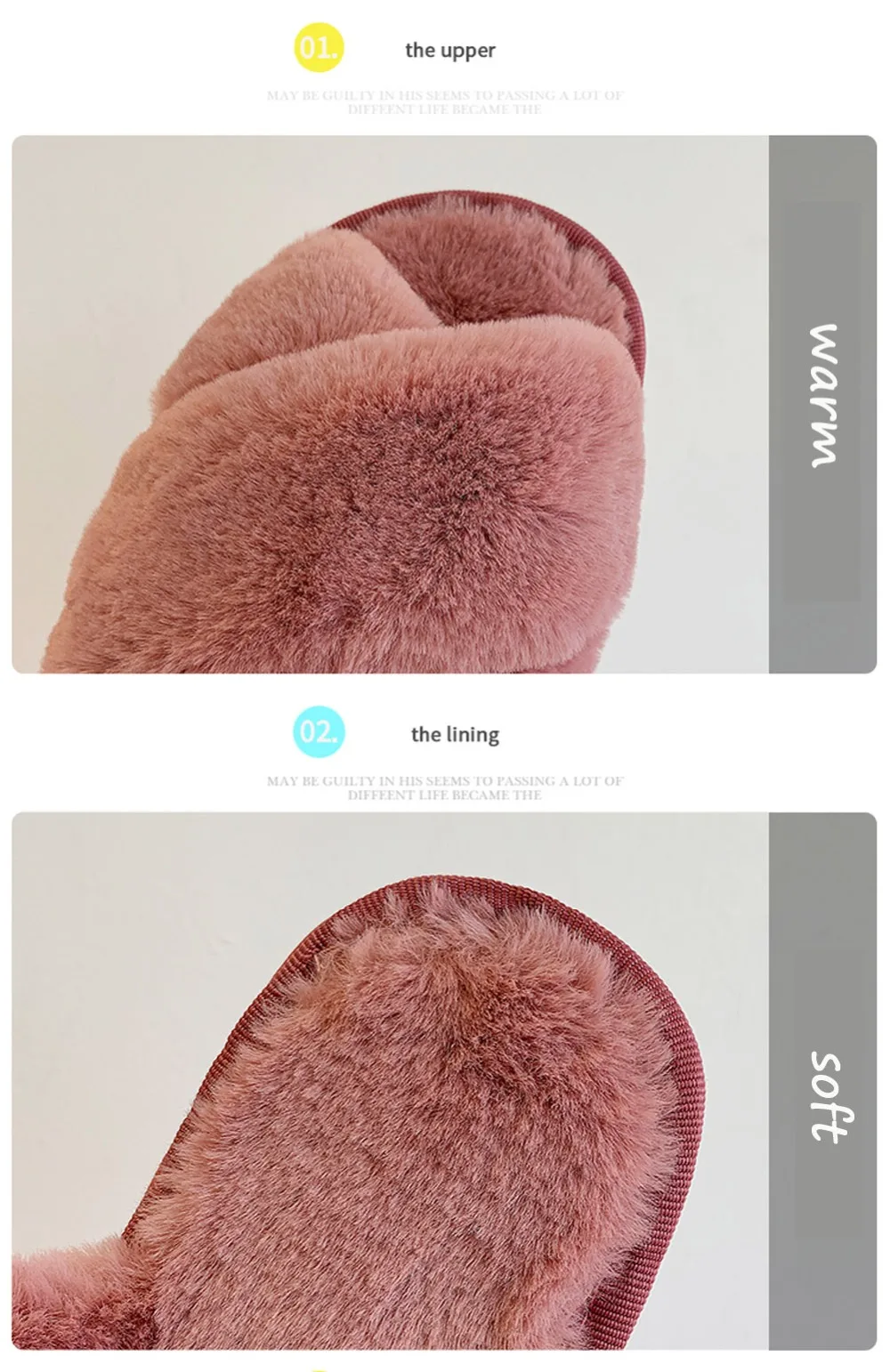 Winter House Women Fur Slippers Fashion Cross Band Warm Plush Ladies Fluffy Shoes Cozy Open Toe Indoor Fuzzy Slides For GirlsBuy Now On Aliexpress