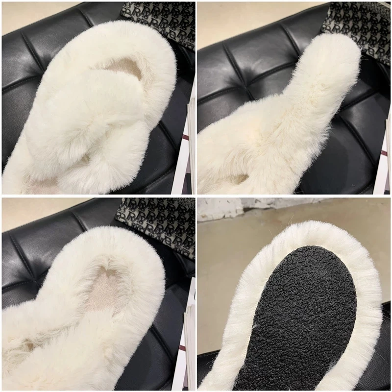 | Winter House Women Fur Slippers Fashion Cross Band Warm Plush Ladies Fluffy Shoes Cozy Open Toe Indoor Fuzzy Slides For Girls |