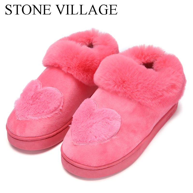 Cotton Women Slippers New Arrival Heart-Shaped Warm Plush Winter Fur Slippers Soft Indoor Shoes Flat With Home Slippers