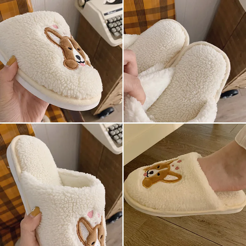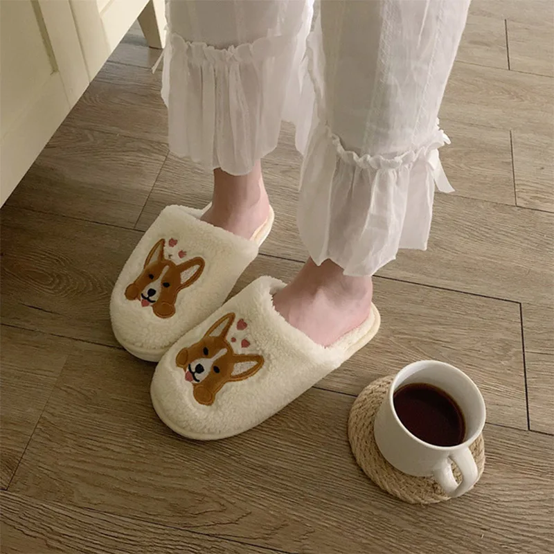 Slippers Women House Slippers Warm Slippers Cute Corgi Women Winter Fur Home Shoes For Women Slippers Casual Plush Comfortable