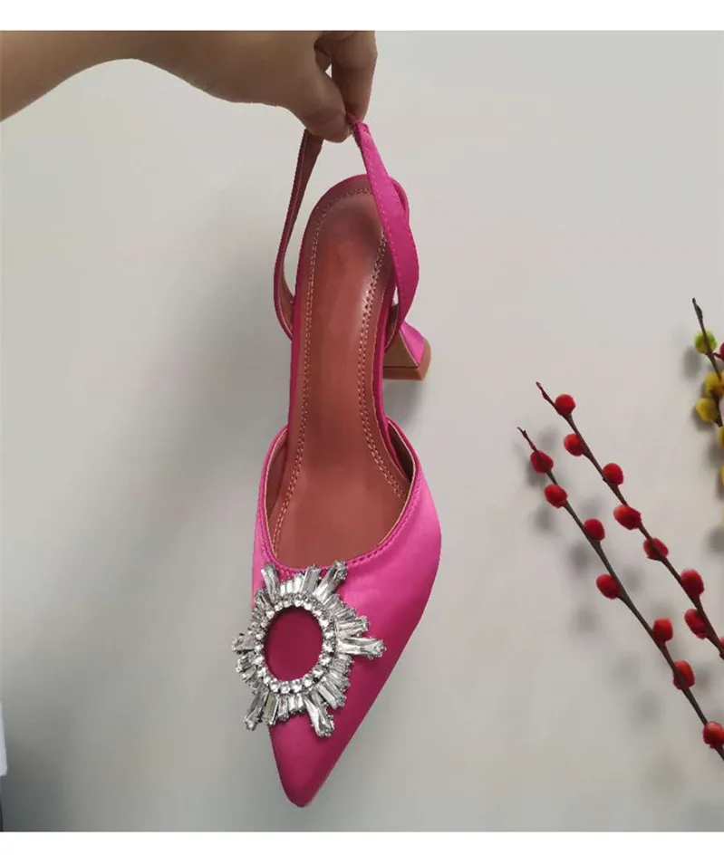 2021 Brand women Pumps luxury Crystal Slingback High heels Summer bride Shoes Comfortable triangle Heeled Party Wedding Shoes
