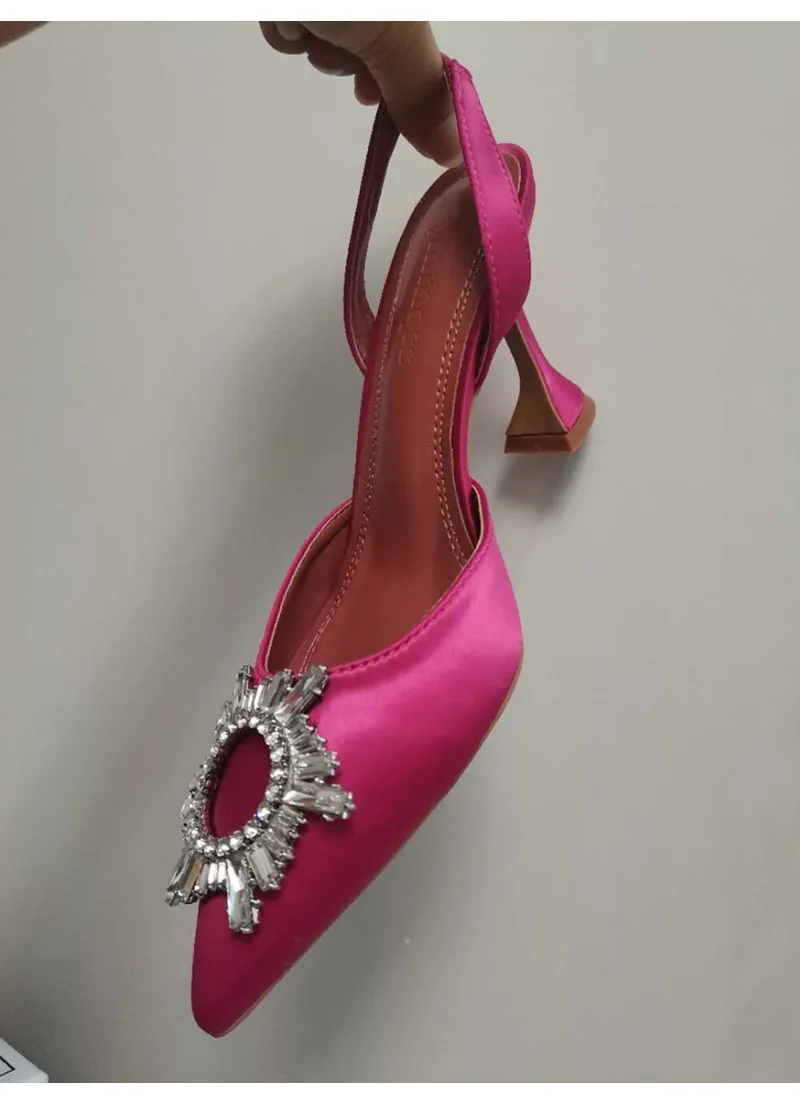 Best Price Comparison With 2021 Brand women Pumps luxury Crystal Slingback High heels Summer bride Shoes Comfortable triangle Heeled Party Wedding Shoes