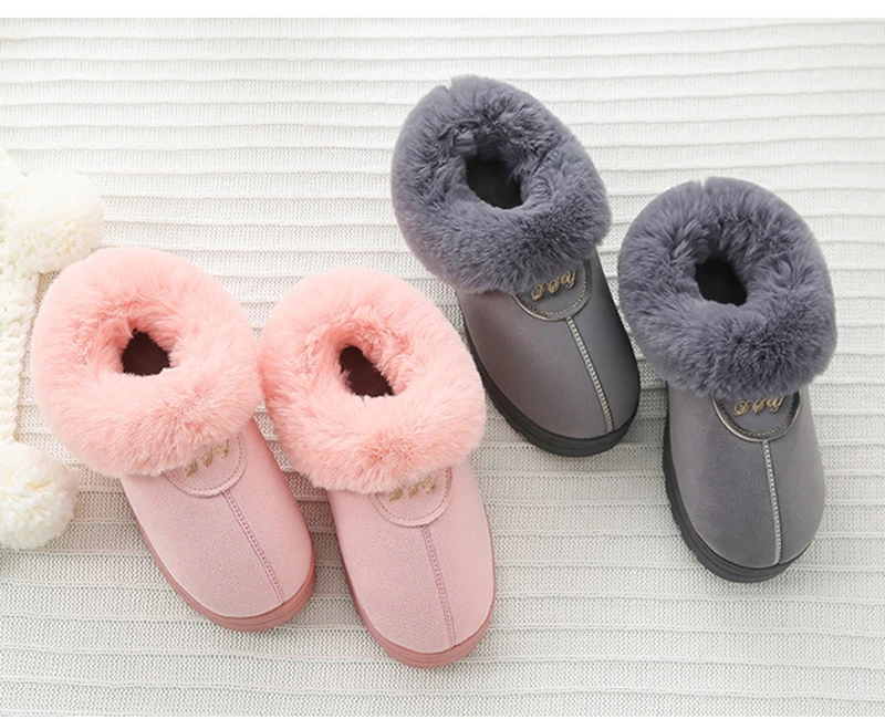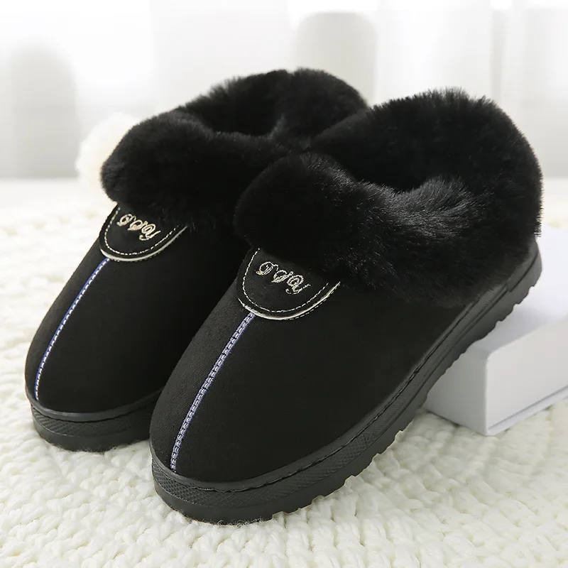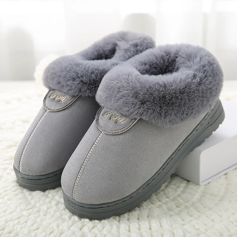 | Mntrerm Winter Warm Cotton Slippers Female Thick Faux Fur Plus Size Velvet Men's Indoor Home Slippers Warm Couple Shoes Woman |