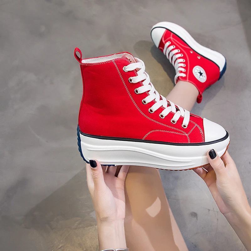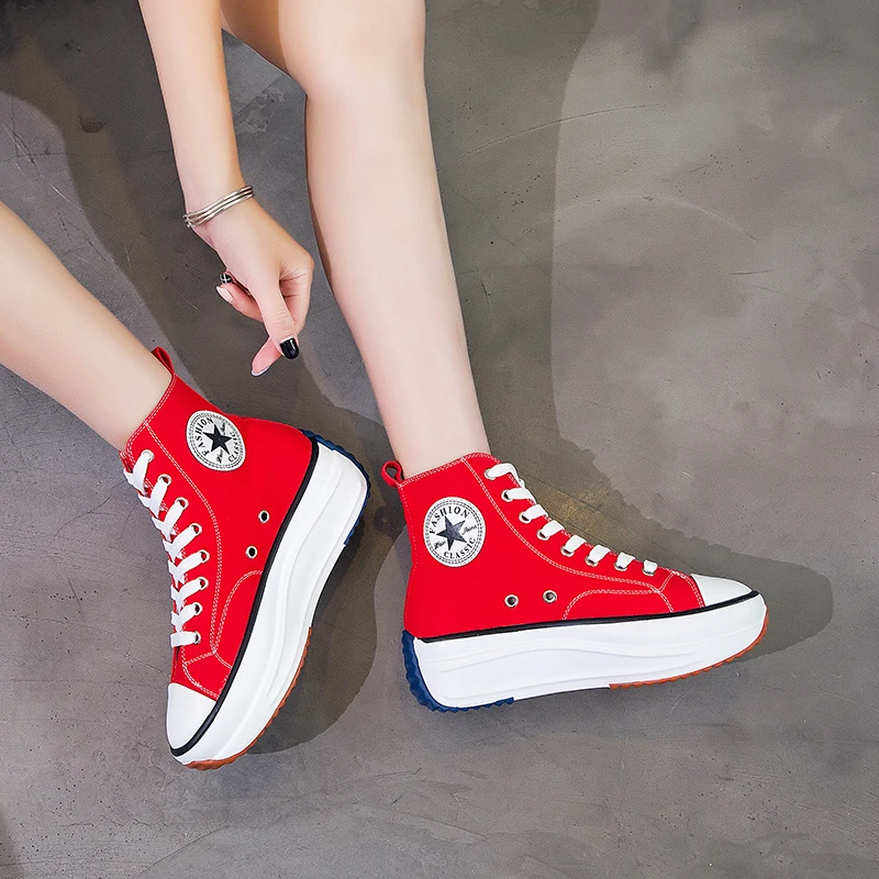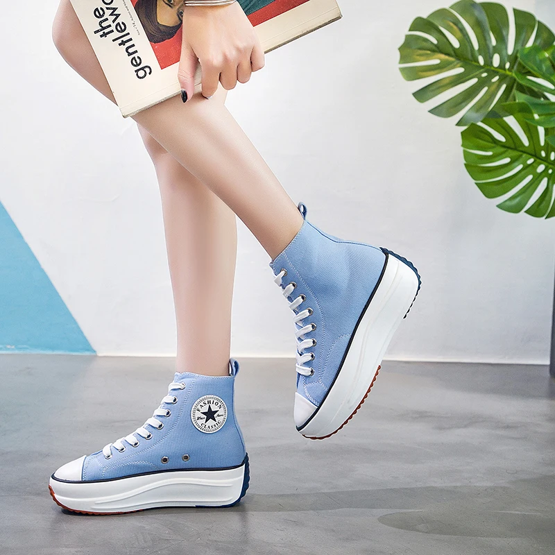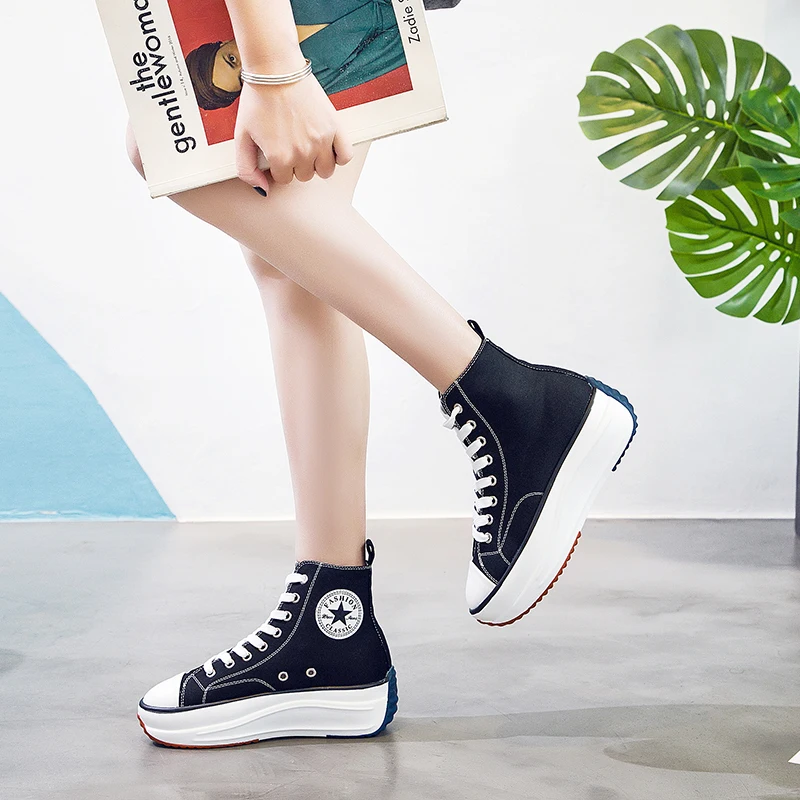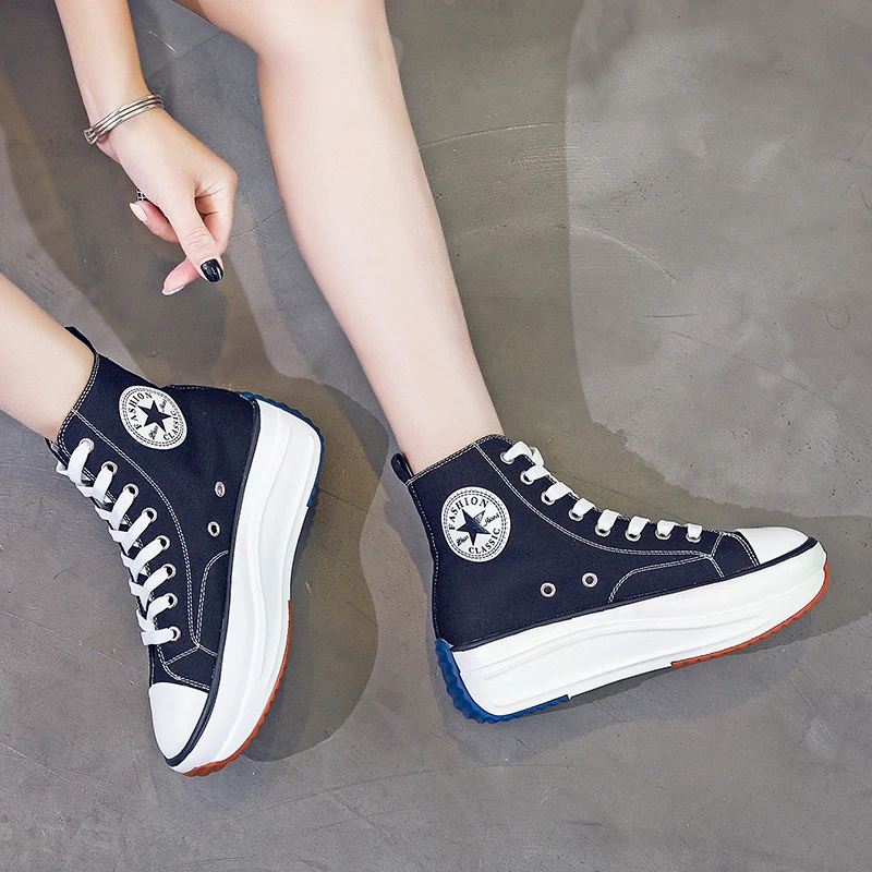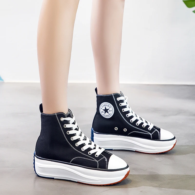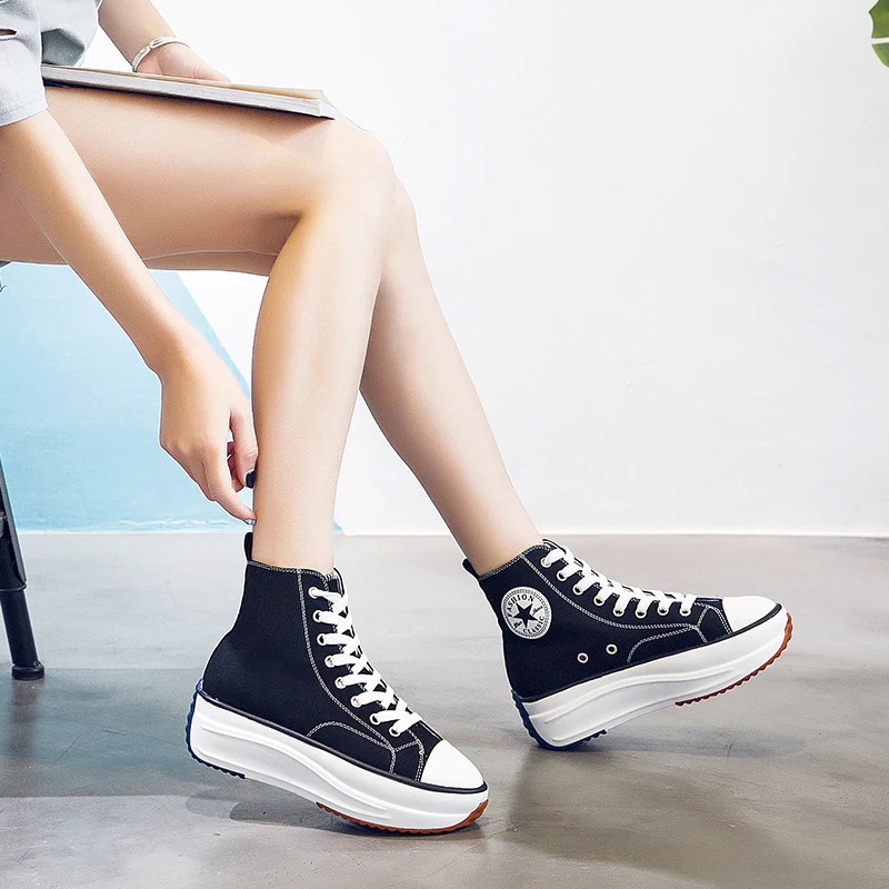 | Canvas Shoes Women Trainers Women High Top Sneaker Lady Autumn Female Footwear Breathable Girl White Black Sneakers QW-62 |