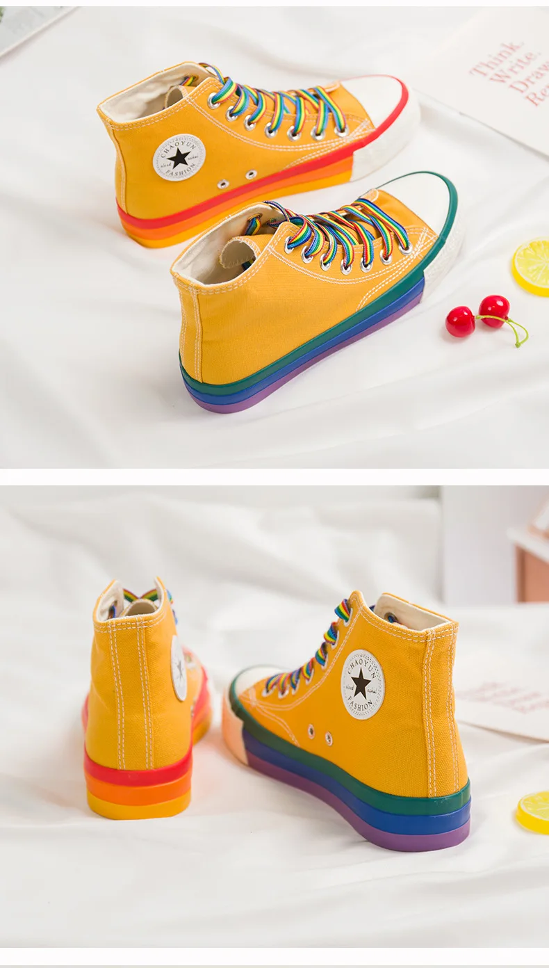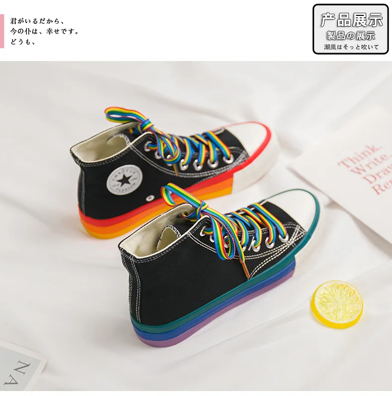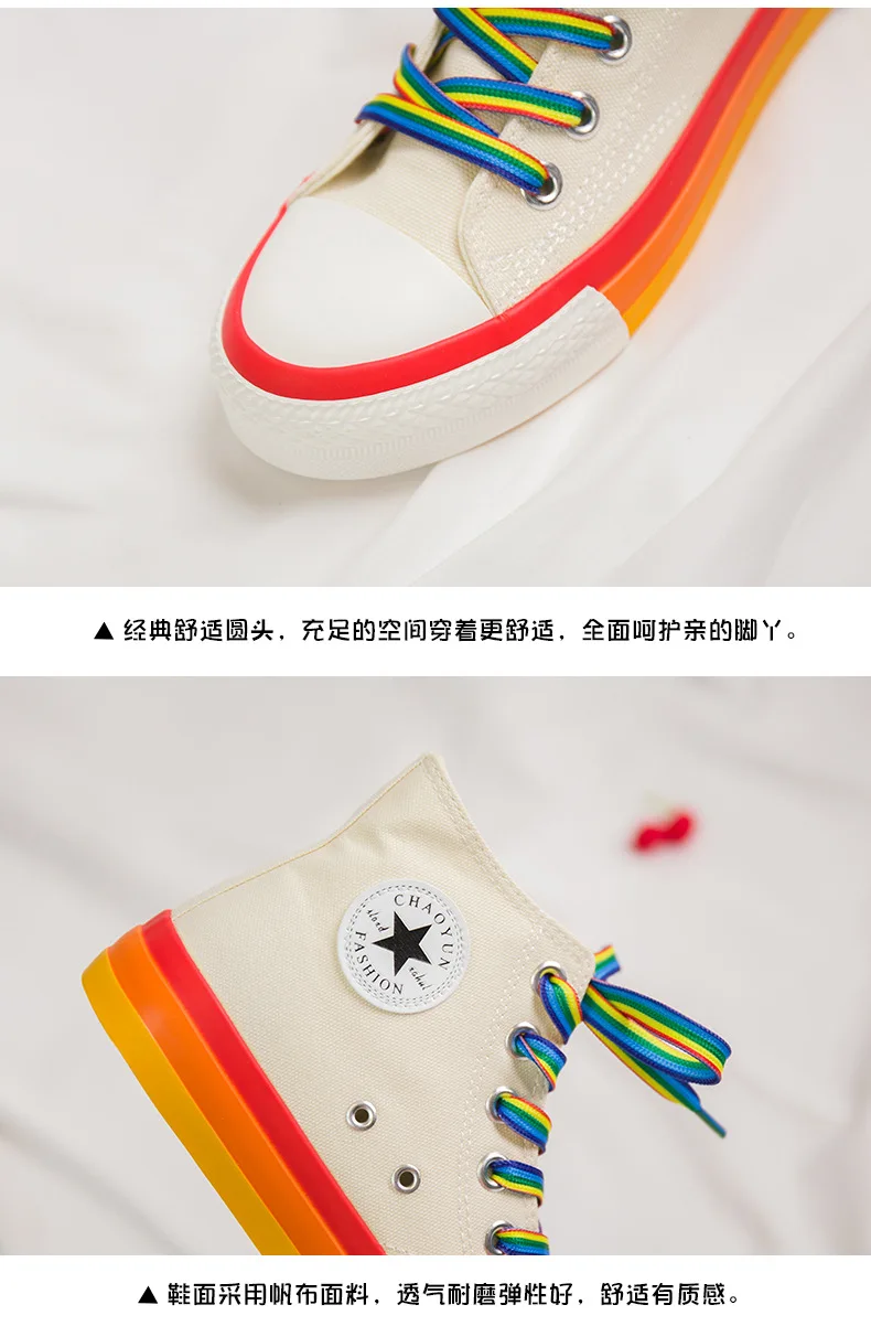 SWYIVY Rainbow Bottom Casual Shoes Woman High Top Sneakers Cavans 2020 Spring Female Casual Shoes White Canvas Sneakers Oman