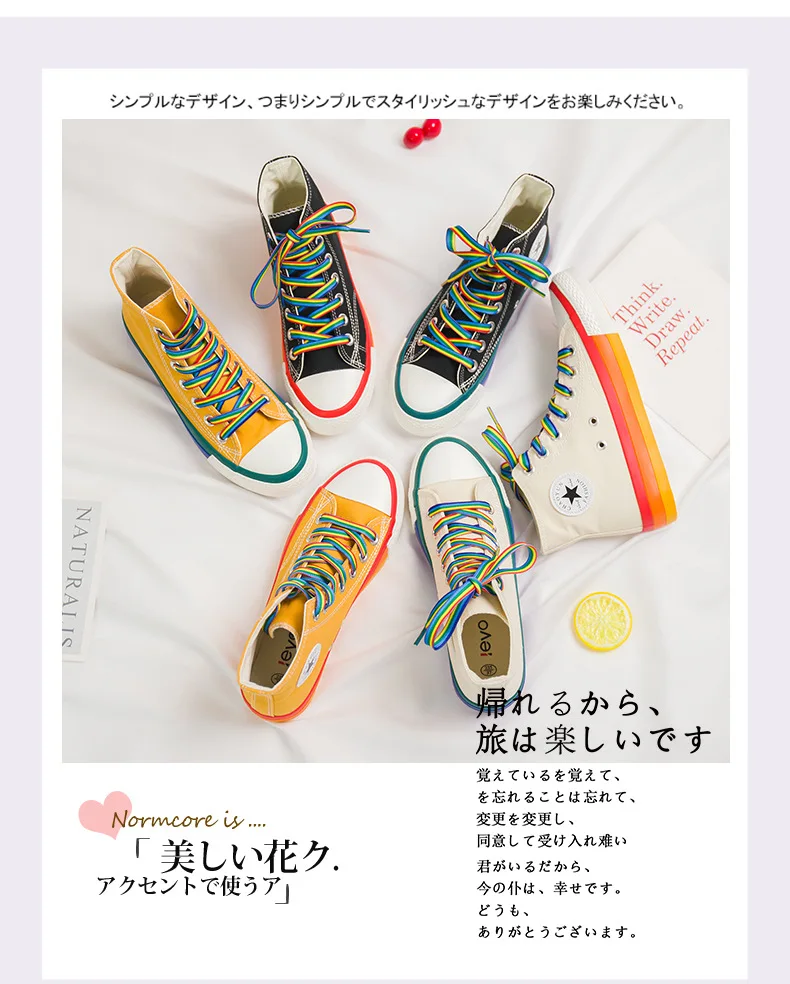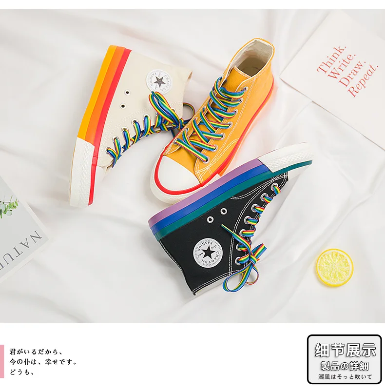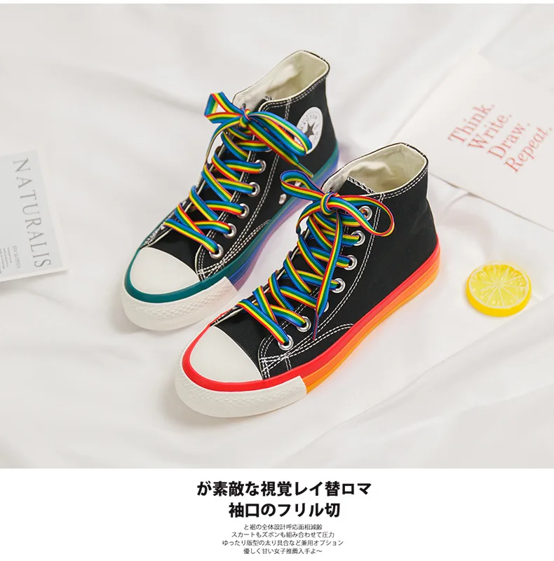 | SWYIVY Rainbow Bottom Casual Shoes Woman High Top Sneakers Cavans 2020 Spring Female Casual Shoes White Canvas Sneakers Oman |